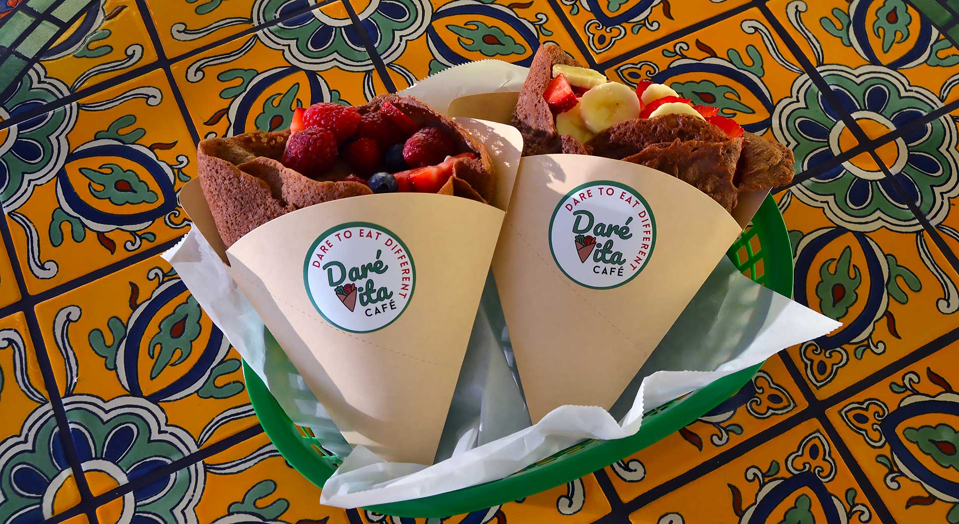 Daré Vita Café was created by Margie Traxler, a natural food scientist and lifelong advocate for clean, inclusive eating. Her vision was to build a café where everyone can enjoy fresh, flavorful food without worry. Every crepe, wrap, and smoothie is made with care using ingredients that are free from gluten, grains, cane and corn sugars, soy, peanuts, tree nuts, and dairy. Margie’s decades of experience and personal commitment to transparency shape everything about Daré Vita Café, from its welcoming atmosphere to its focus on honest, wholesome ingredients.